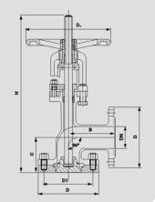角式放料閥閥體為90度角,進出口法蘭大小相同。閥體內(nèi)腔裝有耐沖刷、耐腐蝕的密封圈,在開啟閥門瞬間,可以保護閥體不被介質(zhì)沖刷、腐蝕,并對密封圈子進行特種處理,使表面硬度達到HRC25~40。閥座密封面與閥瓣密封面均堆焊有司太立硬質(zhì)合金,密封副采用線密封,保證密封,保證密封的可靠性,并可防止結(jié)疤。閥瓣斜面于閥座角形成線密封,閥瓣閥瓣啟閉時有手輪帶動銅螺母,螺母帶閥桿(上下運動有夾板定向,閥桿不會出現(xiàn)旋轉(zhuǎn))向反應(yīng)釜內(nèi)伸。底部法蘭可拆卸,焊接到反應(yīng)釜底部(注意:閥門需要是關(guān)必狀態(tài)拆卸法蘭)。