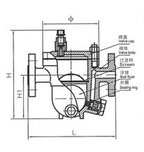 該閥利用浮力原理,浮球根據(jù)凝結(jié)水量的多少隨水位的變化而作升降,自動調(diào)節(jié)閥座孔的開度,連續(xù)排放凝結(jié)水。當(dāng)凝結(jié)水停止進(jìn)入時,浮球靠自重降到底部,關(guān)閉排水閥座孔。由于排水閥座孔在凝結(jié)水位以下,水汽自然分離,形成水封,達(dá)到無蒸汽泄漏。