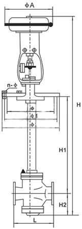 由調(diào)節(jié)器來(lái)的信號(hào)壓力輸入氣動(dòng)薄膜執(zhí)行機(jī)構(gòu)的氣室,產(chǎn)生推力,通過(guò)連接桿件帶動(dòng)閥芯,閥芯位置的變化使閥的流通截面積變化,實(shí)現(xiàn)對(duì)介質(zhì)流量的調(diào)節(jié)。